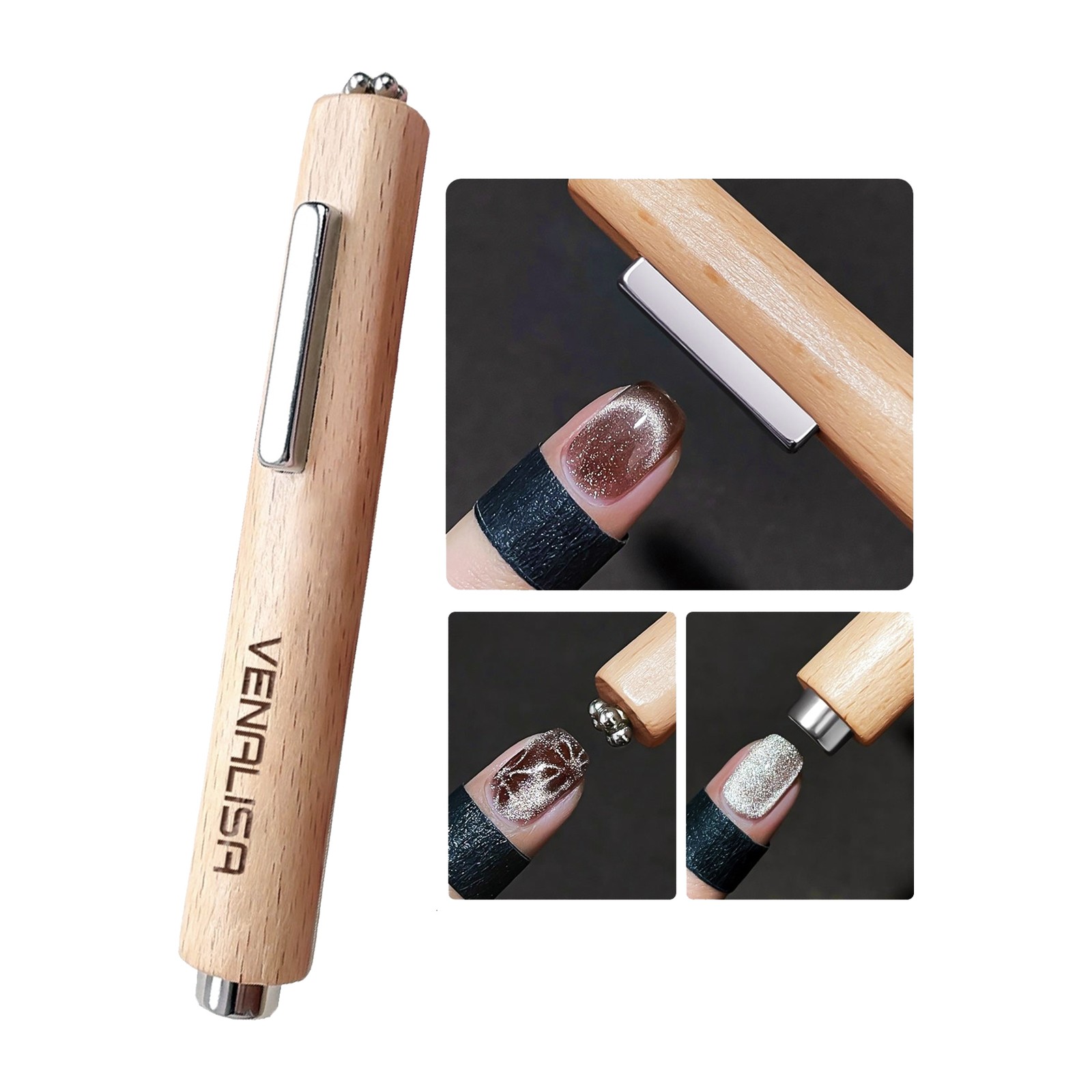 Stylo magnétique pour ongles 3-en-1, avec manche en bois, idéal pour des effets précis de Cat Eye.